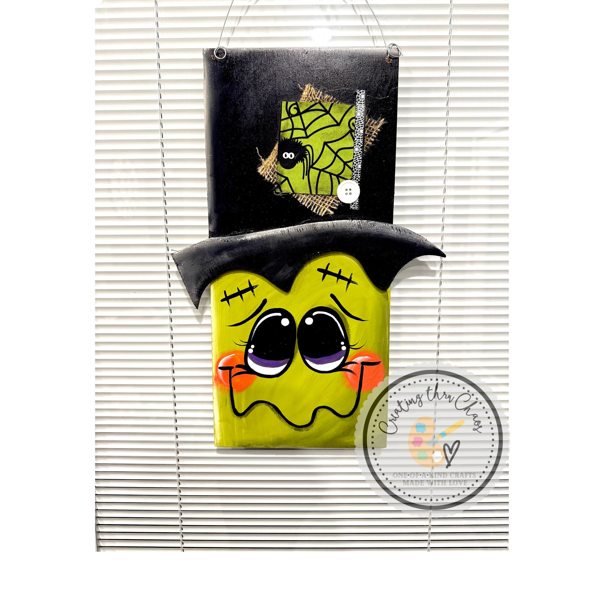 Bring a touch of whimsy to your doorway with the Forever Frank Scarecrow Hanger. Handpainted on sturdy 1/4 inch plywood, this compact door hanger features a charming Frankenstein style scarecrow adorned with playful accessories. Its rustic design adds cozy autumn flair, making it a delightful welcome for friends and family. Perfect for adding a splash of seasonal cheer without taking up too much space.