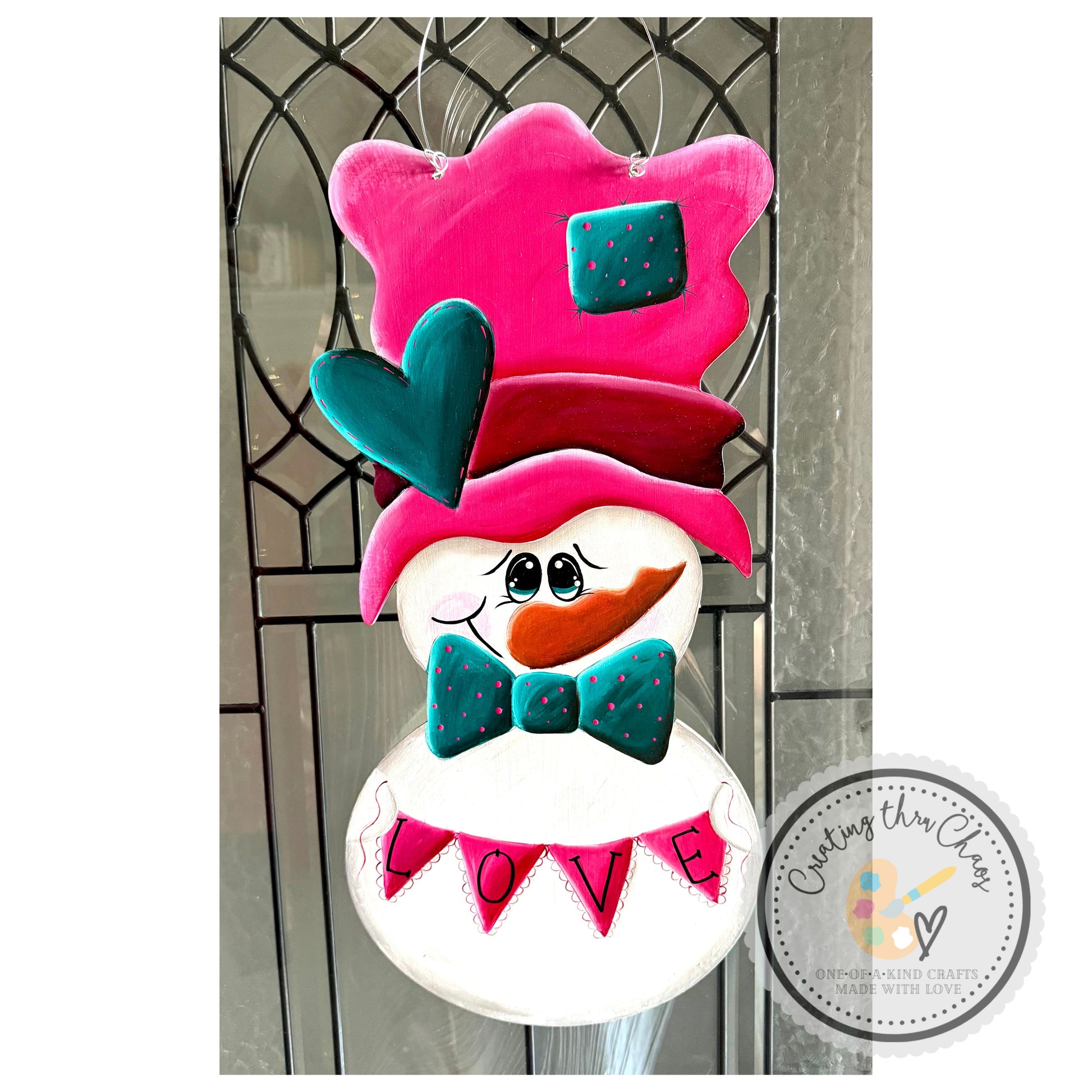 Melt hearts this Valentine's Day with our LOVE Snowman Door Hanger—a cheerful hand-painted design that brings together winter charm and romantic spirit. Crafted on quarter inch plywood with vibrant, durable paint, this playful snowman celebrates the season with style. Perfect for spreading festive cheer on your front door, bedroom, or as a thoughtful gift for someone special. A delightful reminder that love keeps hearts warm, even in the coldest season.