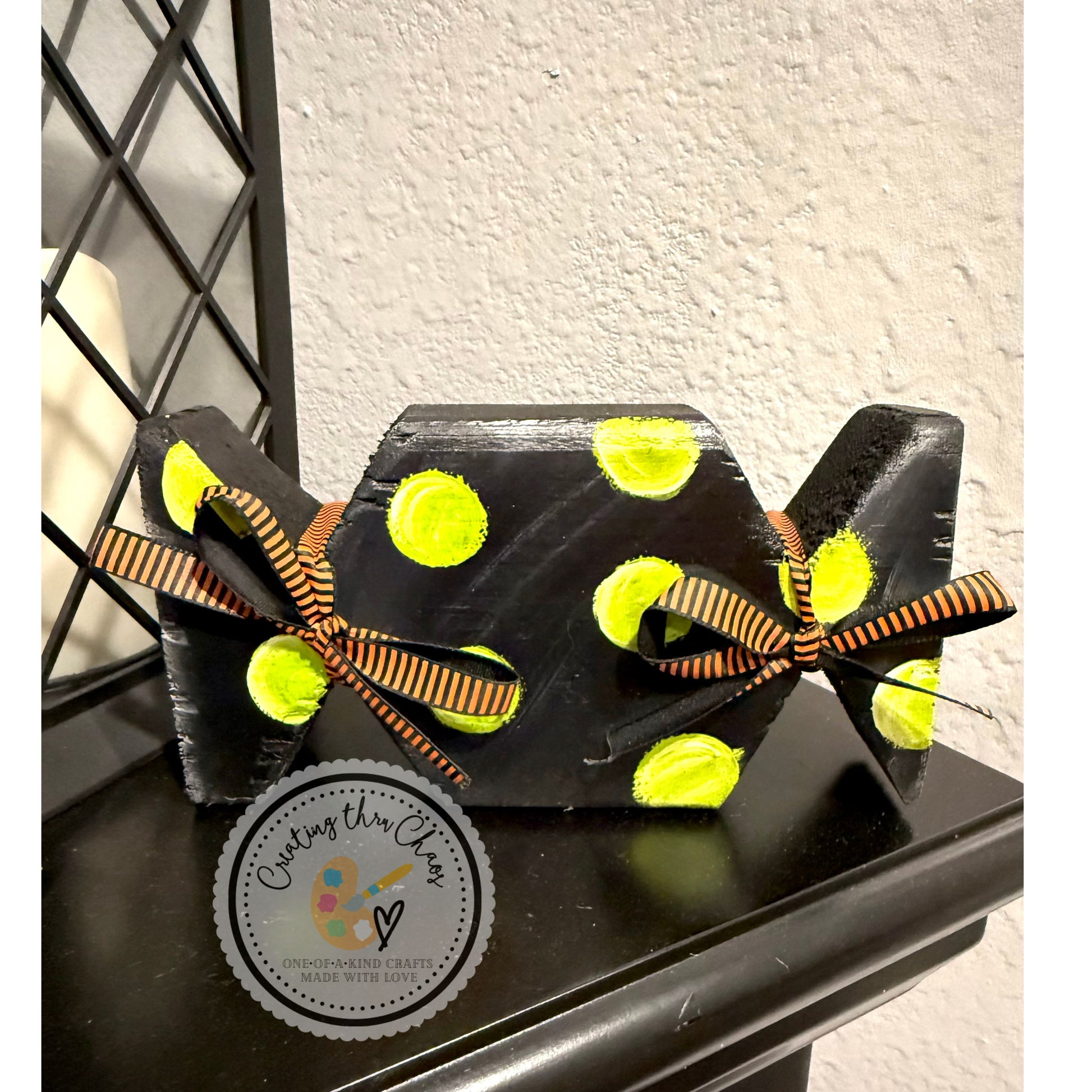 Add a splash of fun to any space with this playful Candy Block crafted from sturdy 2x4 board. Vibrantly painted in lively black and green hues, it’s topped with adorable ribbon accessories that bring a cheerful charm. Perfect for brightening up your room or gifting a smile!