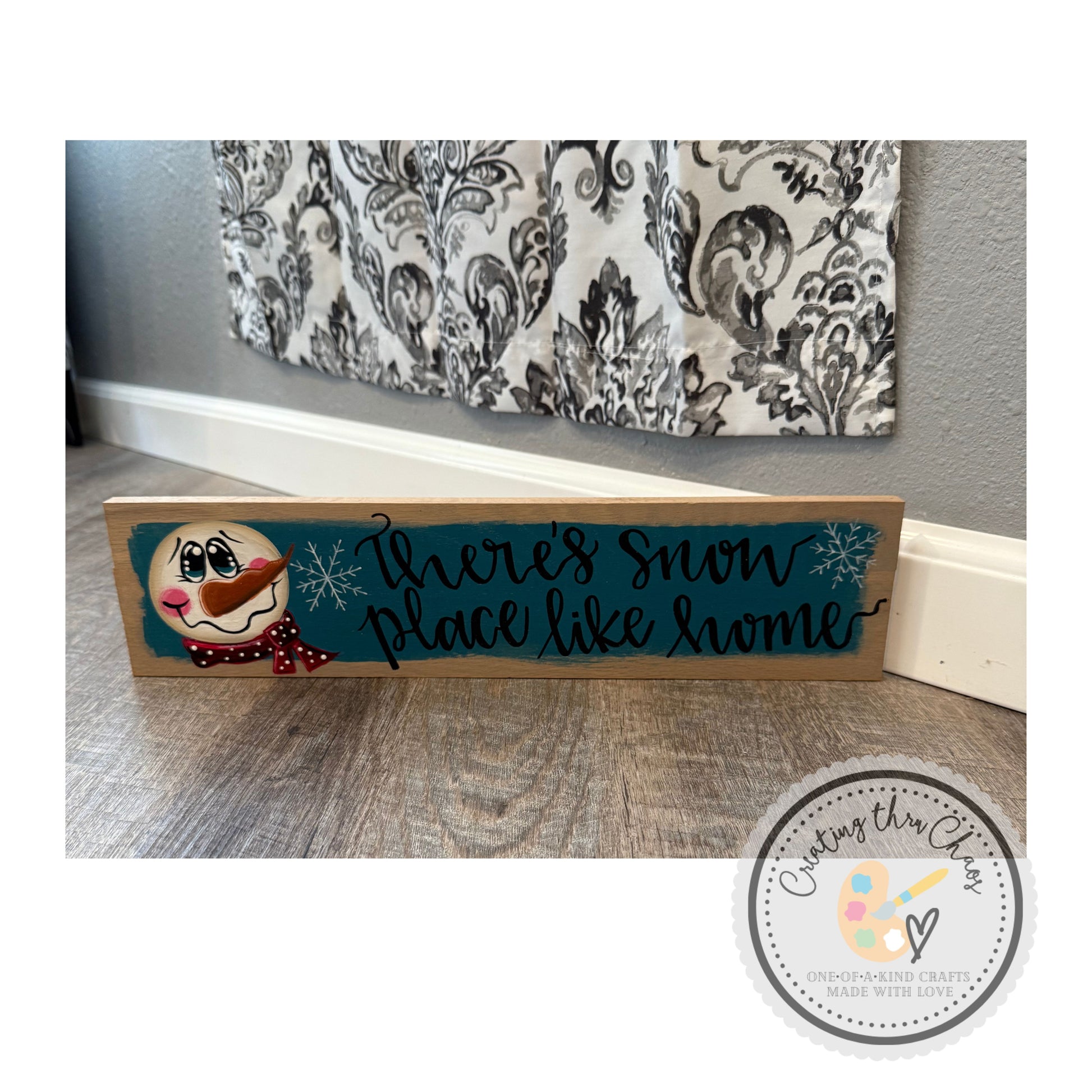 There's Snow Place Board - Discover your cozy winter haven with this hand-painted rustic hardwood board featuring a cheerful snowman design paired with a sweet, punny phrase. Perfect for entryways, bedrooms, or family spaces, this artisanal piece brings lighthearted fun and rustic warmth to your holiday décor. An ideal gift for pun lovers, winter enthusiasts, and anyone who enjoys seasonal pieces that blend humor with heartfelt charm.