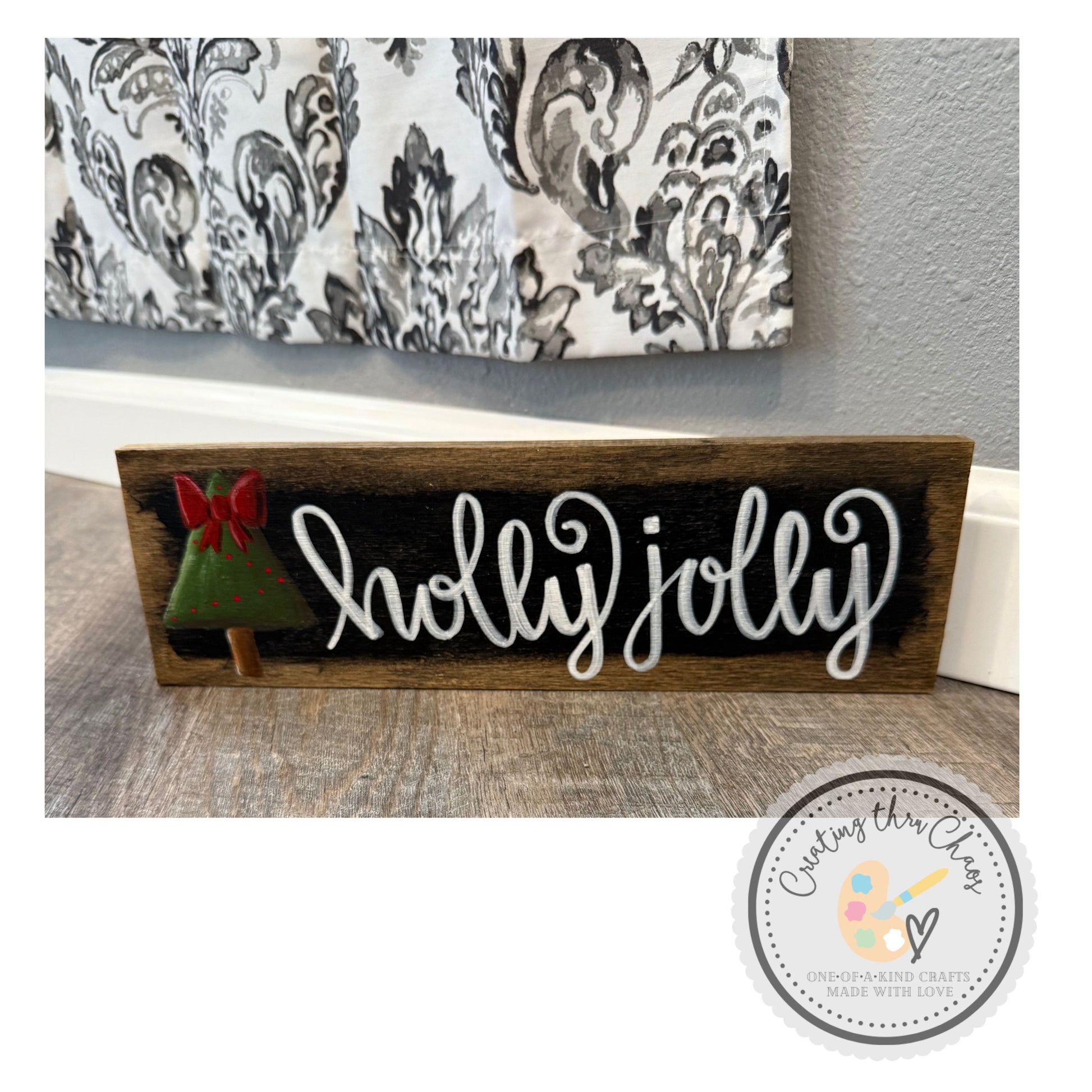 Spread holiday cheer with this handpainted rustic hardwood sign featuring a festive Christmas tree design paired with a fun, spirited phrase. This cheerful board captures the joy and merriment of the season, making it perfect for porches, entryways, or holiday gatherings. A delightful gift for anyone who loves festive decor with character and seasonal flair.