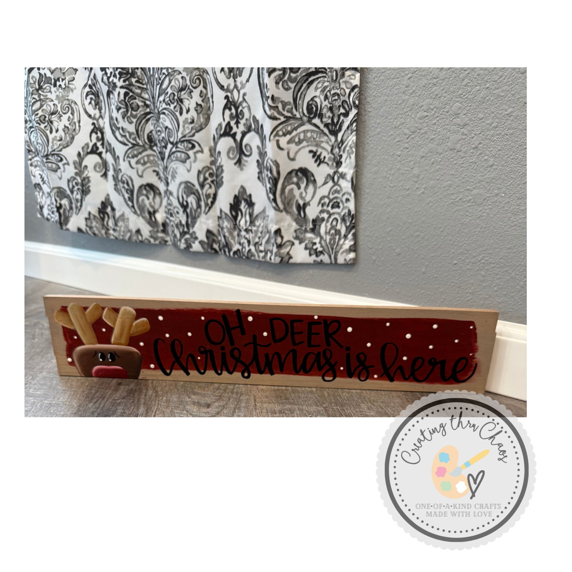 Oh Deer Board - Laugh out loud with this hand-painted rustic hardwood board featuring an adorable reindeer design paired with a silly Christmas pun. Perfect for cabins, living rooms, or holiday gatherings, this artisanal piece brings lighthearted fun and rustic charm to your seasonal display. A delightful gift for nature lovers, pun enthusiasts, and anyone who appreciates playful holiday décor with a touch of woodland whimsy.